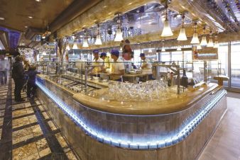 На борда има 8 места за хранене и 11 бара. Между тях основен ресторант, пицария, бюфет ресторант на самообслужване, джелатерия Амарило с италиански занаятчийски сладолед, винотека, немска бирария, ресторант Тепаняки с японска кухня.