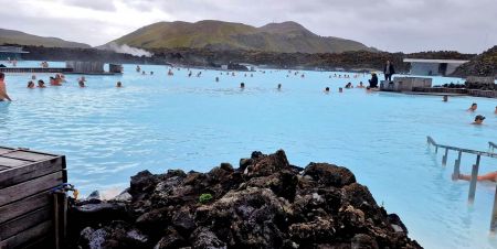Синята лагуна е мястото, което не бива да пропускате. Само на 45 минути от Рейкявик, в средата на поле от лава, се намира огромен открит басейн с млечносиня вода, богата на полезни за кожата минерали и с температура от 37°- 39°C. В Исландия широко се използват геотермални води за отопление и именно такъв горещ извор, използван в близка геотермална централа, става причина за създаване на лагуната през 80-те години на миналия век. Постепенно мястото става много популярно, заради благотворното си влияние върху кожата и удоволствието да се потопиш в горещата вода, когато навън времето почти винаги е студено. Ще имате 2 часа, за да се насладите на лагуната. В комплекса има съблекални, душове, кафене и ресторант. Носете си бански. Посещението не е препоръчително за хора с ниско кръвно или сърдечни проблеми. На връщане в Рейкявик ще разгледаме основните забележителности на града. Столицата на Исландия е интересна смес между стари цветни дървени къщи и модерни постройки. Ще видим причудливата църква Халгимскиркя, парламента от 930 г., сградата на кметството. Отплаваме в 18.00 ч.