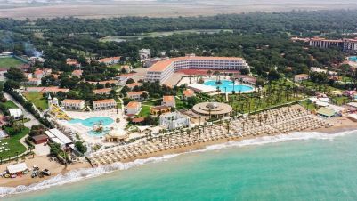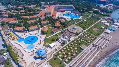 семейна почивка с деца, това е много добър избор — има водни пързалки, детски клуб, големи вили.