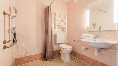 - Double Room – с едно голямо двойно легло, бюро, телевизор, баня с душ