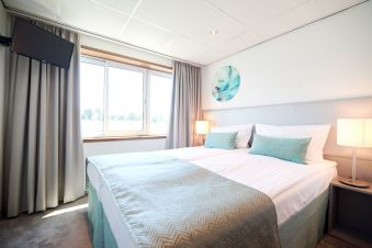 Каютите са с площ от 12 м2 и разполагат с индивидуален климатик, сателитна ТВ, сешоар, сейф, баня и тоалетна.