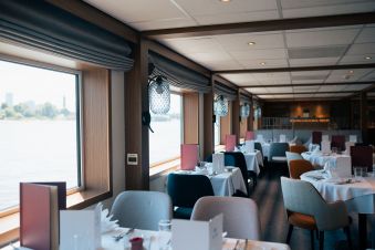 Каютите на горната палуба имат големи френски прозорци, които се отварят.