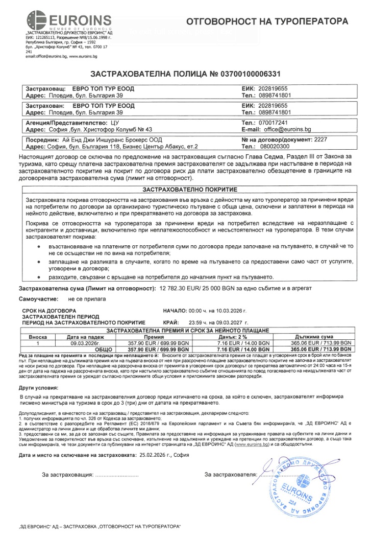 Договор и Общи условия за туристически пакет