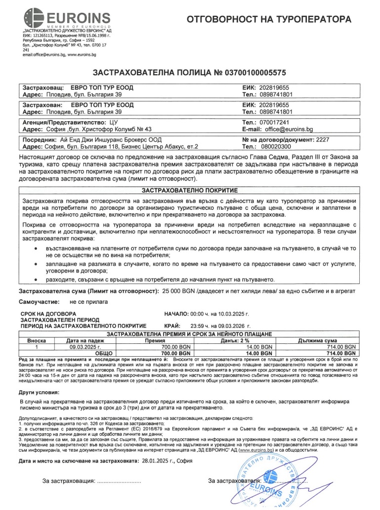 ОБЩИ УСЛОВИЯ НА ЗАСТРАХОВКА "ОТМЯНА НА ПЪТУВАНЕ"