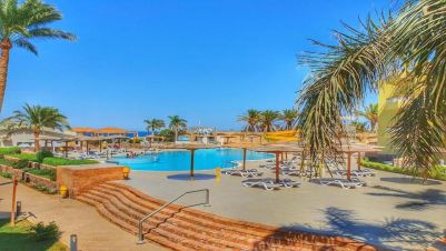 Palm Beach Resort 4* е обзаведен в модерен стил, а обстановката и атмосферата са традиционни за Египет. Хотелът разполага с прекрасни гледки към Червено море, с 2 басейна, собствен пясъчен плаж и клуб по гмуркане. Гостите на хотела имат на разположение още: ресторант с международна кухня, бар с напитки и леки закуски, релаксиращи масажи, сауна и фитнес, екип от аниматори, организиращи различни занимания и игри през целия ден. Центърът по гмуркане - The Caves, предлага различен тип водни спортове, като гмуркане, шнорхелинг и уиндсърф.