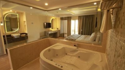 Приблизителна площ на помещението - около 25 кв.м. Разполага с телефон, сателитна телевизия, сешоар, сейф, мини бар - срещу допълнително заплащане, електрическа кана с чай и кафе, климатик, баня с тоалетна и тераса.