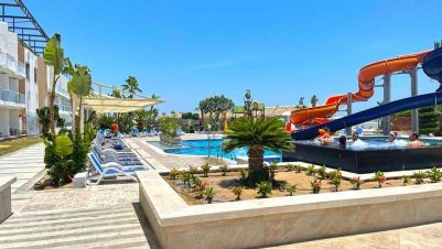• Основен басейн, отопляем басейн, детски басейн, 2 водни пързалки за възрастни, 2 водни пързалки за деца