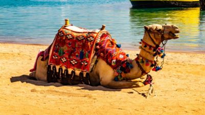Следва яздене на камили (около 20 минути) по плажа. След това чай и лека бедуинска вечеря. Отпътуване към хотелите.