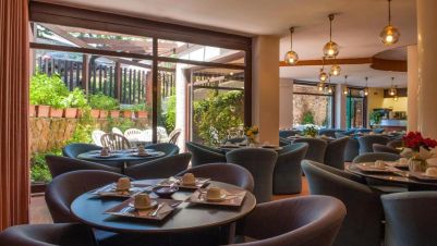 Салон за закуска на шведска маса, бар, разположен между лобите и салона с работно време от 10 до 24 часа.