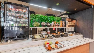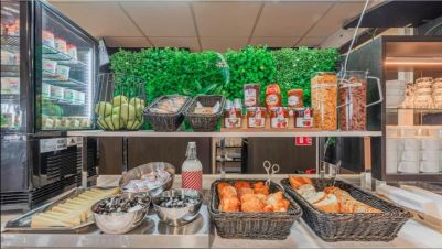 Всяка сутрин се предлага закуска на шведска маса. Хотелът разполага и с автомати за напитки и леки закуски.