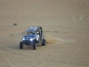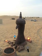 14:30 - 20:00 ч. Сафари в пустинята. В един джип се настаняват 6 човека. По време на тази вълнуваща обиколка ще се возите на джипове сред златните пясъци на пустинните дюни. Позволете на прекрасната мека бяла светлина на лунните лъчи да падне върху лицето Ви по време на вълшебните моменти в пустинята след залез слънце с настъпването на нощта ... Спускайки се и изкачвайки се по стръмните пясъчни дюни, ще се отправите към бедуинския лагер, където ще имате възможност да яздите камила, да си направите временна татуировка с къна, да се премените в арабски дрехи или да пушите наргиле с различни аромати. Вечерята ще бъде на барбекю. Безалкохолните напитки, кафето, чаят и минералната вода са без лимит, а за десерт ще опитате арабски сладкиши, приготвени на място докато чакате. Кръшна танцьорка, облечена в национална носия и боядисана с къна, ще завърши това необикновено пътешествие с истински арабски танц. Възможност да посетим отново фонтаните и да видим прекрасните им танци. Прибиране в хотела с такси Нощувка.