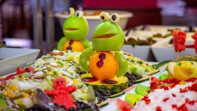 Основният ресторант предлага богата шведска маса с национални и международни ястия, като менюто се обновява на всеки две седмици. Ресторантът предлага и тематични вечери в определени дни.