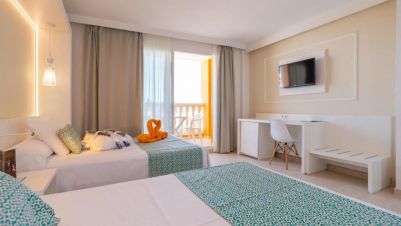 Семейства с деца — големи стаи с две големи легла, детски клуб, анимация и плитък пясъчен плаж пред хотела.