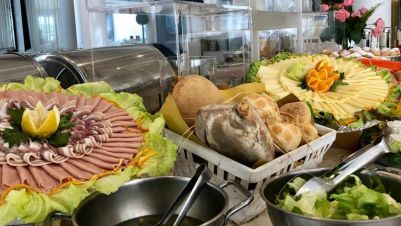 - Хотелът предлага нова концепция за вечерята чрез поръчка на място в ресторанта, като тя се приготвя на момента и изисква съответното технологично време. Организира се със сервиране и включва предястие и основно, а салатите и десертът са на блок маса.