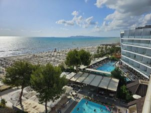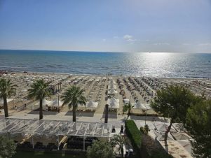 На разстояние от плажа 150 м., но със собствен такъв; собствени чадъри и шезлонги, бийч бар където гостите ползват своя ALL INCLUSIVE. Плажът на Голем е най-широкият и пясъчен. Пред хотела минава дългата 16 км крайбрежна алея свързваща почти цялата Ривиера и изключително приятна за разходки и спорт.