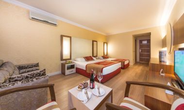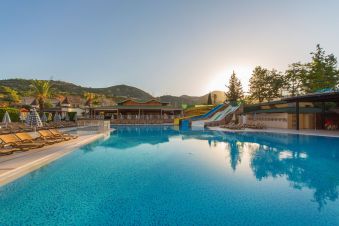 Басейни, водни пързалки, плажен волейбол, гимнастика, турска баня, сауна, миниклуб, анимация.