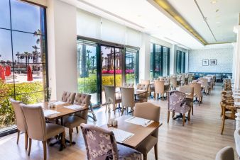Основен ресторант, а ла карт ресторанти - италиански, мексикански, рибен, азиатски и суши, турски, снек ресторант, сенк бар, бар на басейна, плажен бар, лоби бар, витаминен бар, нощен клуб.