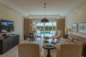 5 синиър суити с площ 54 кв. м. със спалня, дневна и джакузи в банята. Стаите са с изглед море.