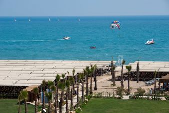 Петзвездният хотел разполага със собствен плаж, а използването на чадър и плажни хавлии е безплатно за гостите на хотела.