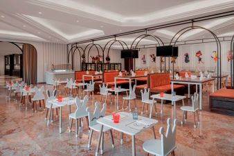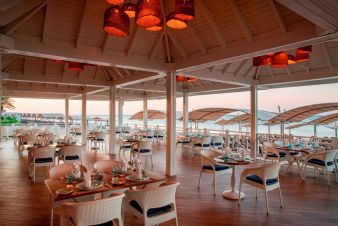 Основен ресторант (с тематични вечери), ресторант за италианска кухня, ресторант за далечноизточна кухня, лоби бар, бар на плажа, бар на басейна, аква бар, дискотека.